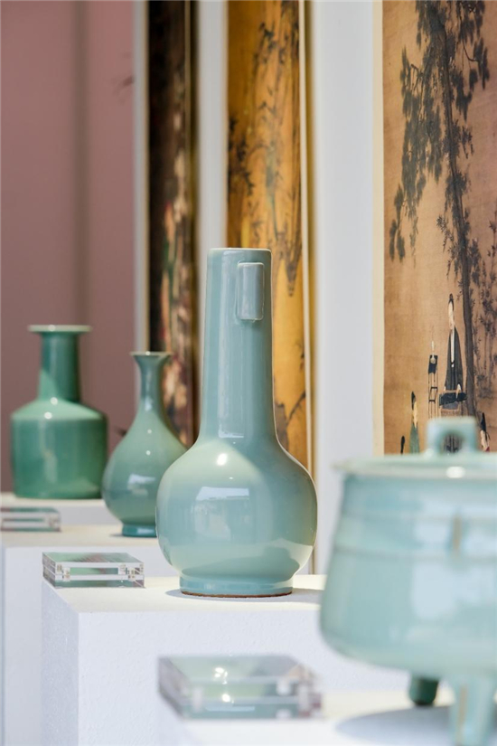 这次龙泉青瓷的展馆采用了清和风雅的匠心设计,竹影婆娑,古意十足,让你在游览的同时,沉浸式体验青瓷的韵味和宋人器物之美。