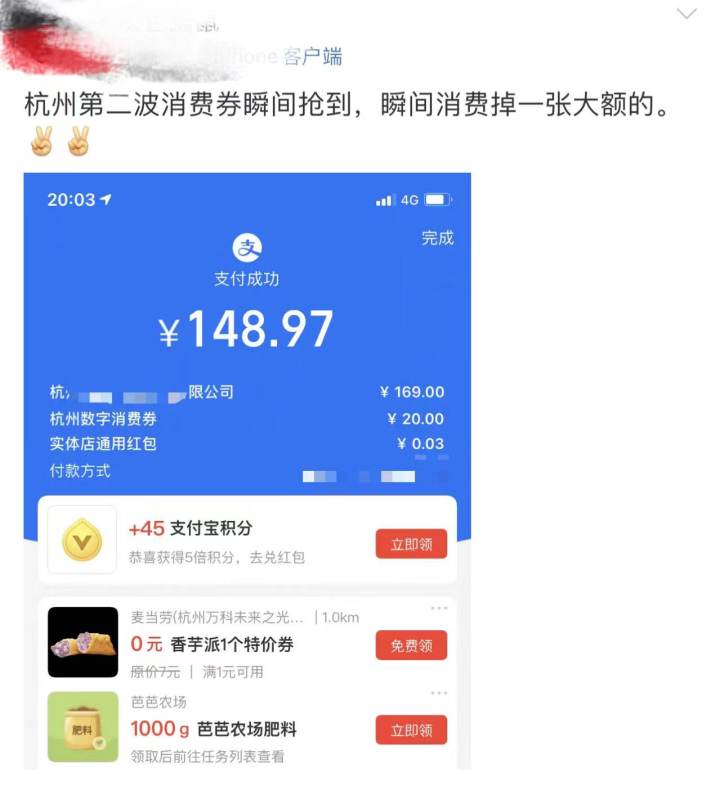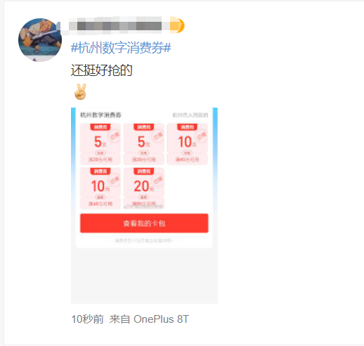 一度前方拥堵,还是领到了!刚刚,你领到消费券了吗?已经有人花出去了!