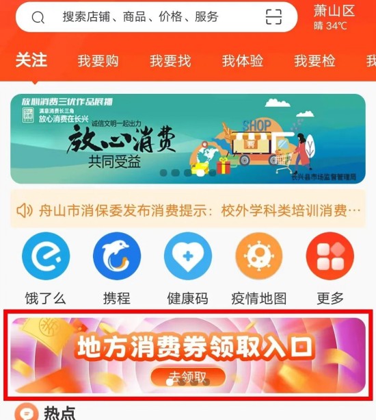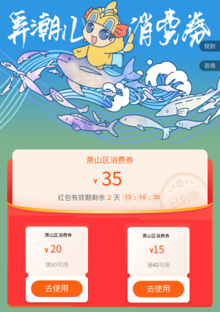 杭州市内用户可通过美团APP搜索“萧山消费券”进入活动页面参与领取“弄潮儿消费券”,也可以在支付宝APP中搜索“消费宝”小程序,进入后点击首页“地方消费券领取入口”,进入领券页面领取“弄潮儿消费券”。