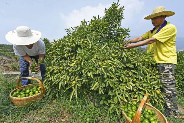 9月12日,在建德三都镇的松蜜果园里,果农们正忙着采摘"大分”特早橘。今夏的持续高温催得特早橘比往年平均提前10天左右成熟,”抢鲜” 上市 获得更好的收益。