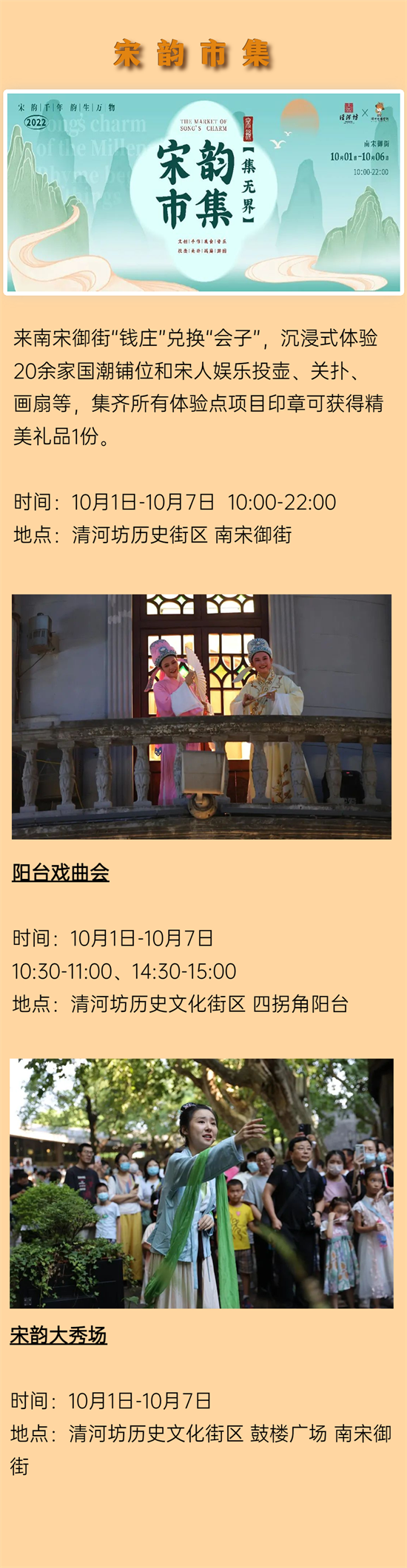 10月4日重阳节当天,在胡庆余堂国药号庆余堂总店(大井巷95号)到店消费者,即可领取精美重阳糕一份(限量100份);单品特价、品牌活动、满送活动;国庆打卡拍照组合,国庆美食福利组合,古代宋韵游戏组合,捶丸游戏。
