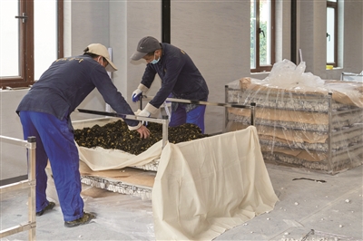 “桂花九曲红梅”运用石灰窨制的特殊技艺,采摘收集刚开放的鲜桂花,阴摊精选后和九曲红梅茶胚以1比4的比例拌匀,用棉布装袋,再以牛皮纸间隔,用生石灰层层铺底叠放在竹框里,密封十几个小时制作而成。