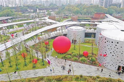 上个月初,小河公园全新建成,成为杭州新晋网红打卡地。这里原本是新中国成立后浙江省建设的第一座油库,那些留存下来的油罐经过设计,变身展陈创意空间。此次艺博会,是小河公园正式开放后迎来的首个展览活动。