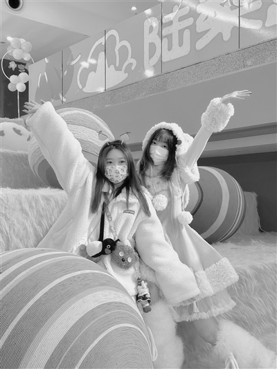 “好可爱呀,真好看!”lulu和加七就在纤维艺术展区前不断合影留念,lulu穿着一身毛绒款的洛丽塔,加七身上也挂着很多个小玩偶。“我们在剧本杀工作室工作,时间比较灵活,在小红书上看到有这个艺术展就相约一起来了。”lulu告诉记者,她们都是毛绒制品的忠实爱好者,家中的玩偶堆积如“山”,甚至还会自己用毛线做一些戒指和小夹子等小饰品,前不久加七还为自己的耳机壳做了一个“毛绒外套”。